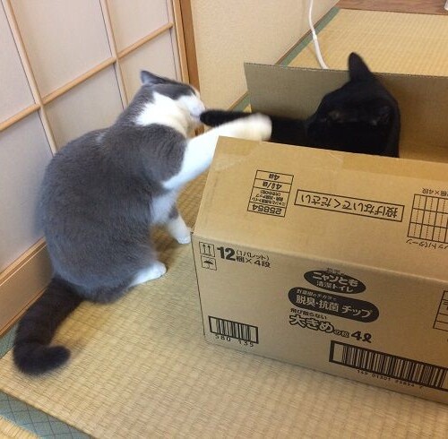 お手洗いの砂が入ってた 段ボールをご堪能される梅ヤマさん。 梅子「この箱、怪ちいにゃ」 母「ゴソゴソしてますね…」 &nb...