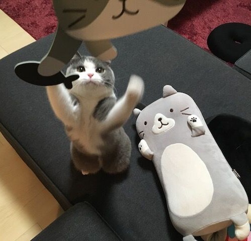 ハチワレさんティッシュカバーと並ぶヤマトさん。 ヤマト「オマエは、にゃんでハチワレにゃにょだ?」 ハチワレさん「しょういうデザインだにゃ」 母「黒猫さ...