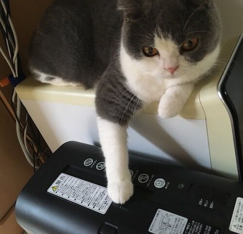 父の書斎にて 梅子「あたちにょ定位置だにゃ」 父「いつもそこにおられますね」 梅子「何か、気配を感じるにゃ」 ヤマト「のそ...