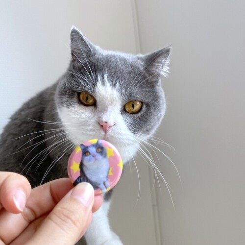 梅ヤマさん缶バッチを作りましたw ヤマト「どれどれ、オレ様がチェックしてやるにゃ」 母「いかがでしょうか?」 ヤマト「オレ...
