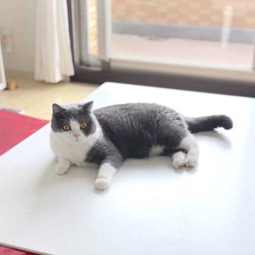 ある日の朝のこと、、、 梅子「にゃんだ?」 母「そこはテーブルですよ(^^;;」 梅子「風通りがよくて、気持ち良いのだにゃ...