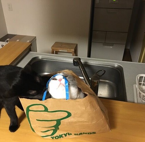 ハンズの袋を調査される梅ヤマさん。。。 ヤマト調査員「調査だにゃ。ゴソゴソ」 母「新入りさんは調査対象ですね(^^;」 ヤ...