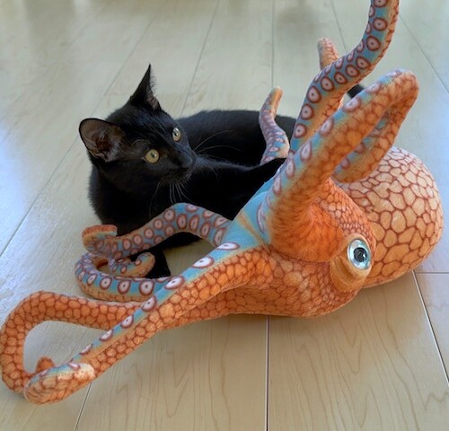 しばし前に、謎の「にゃん体(軟体)動物」が 登場した我が家ですが、、、 この時は黒かったのですが、 今回は、謎のツートーンカラーの ”にゃん体(軟体)...