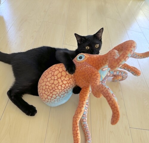 前回の続きです。。。 デスクにあった“マイク”ことビニールさんを 床に移動させたところ、 こんなことになりました、という話ですw 梅子「...