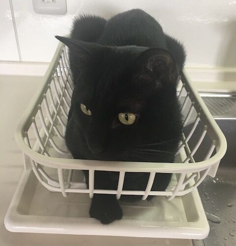 水切りかごネタは、何度か投稿していますが、 お気に入りなのか、度々ご堪能されています。。。 梅子「あたちとコイツと、並んでみたにゃ」 母...