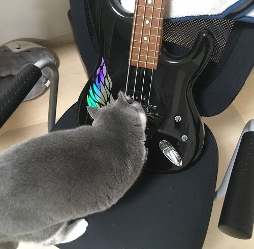 父が、ヤフオクで落札したベースが届いた日のこと。 やはり、早速調査なさる梅子さんでした。。。 梅子「にゃんだ?こにょ模様は?」 父「名ベ...