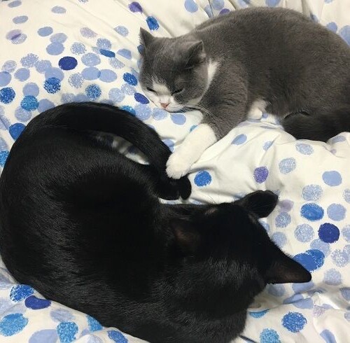 そろそろ寝たいと願う梅ヤマさん。。。 梅子「ヤマト、眠くにゃいか?」 ヤマト「言われると眠いかもにゃ」 母「そろそろオヤスミの時間ですね...